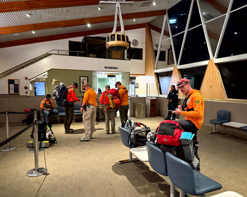 From there the subject was transported back up to Wellman Divide and down to the Tram Station through the Round Valley Campground, arriving back at the Tram Station at roughly 4am. Teams then debriefed the mission and slept at the Tram Station until 5:15am and headed back down the Tram at 5:30am.